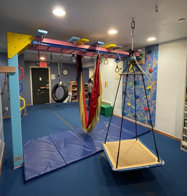 Intensive therapy is an approach that combines various elements of rehabilitation into a treatment approach for neurological disorders including cerebral palsy, developmental delay, traumatic brain injury, hypotonia, post fracture/post surgical retraining, sensory integration disorder/ autism and developmental coordination disorder. The intensive physical therapy schedule is much more rigorous than traditional therapy.When participating in an intensive program, children are seen for three hours a day three to five times a week for 3 consecutive weeks. Through the use of a the universal exercise unit (monkey/ spider cage) children can maximize their physical potential and demonstrate results much faster than traditional outpatient therapy. With three hours of therapy a day, the PT and OT are able to practice movement patterns with the child over and over. This repetition builds the child’s strength and endurance leading to the development of new skills. The Universal Exercise Unit (UEU) is a 400 lb metal structure that consists of a pulley suspension system.The child’s limbs are suspended via pulleys and exercised in a straight plane of motion with gravitational forces eliminated. Children with neurological involvement often have difficulty isolating movement of one extremity from another and performing movement against gravity. The UEU or “monkey cage” allows for the strengthening of the appropriate muscle groups without the weight of gravity. The child will receive a specific strengthening protocol in the UEU that will result in re-education of the nervous system, improved isolation of one limb from the other and increased independent movement. After the monkey cage, the child is placed in the “spider cage.” The spider cage uses the UEU with a system of eight bungee cords attached to a waist belt. The spider cage allows children to experience more independent movements, weight shifting and assisted movements such as sit to stand, jumping and squatting. The pediatric physical therapist or occupational therapist assists in guiding children through movement patterns that strengthen muscles and allow the child to perform the movement more independently. Call (212)595-1705 to inquire about cost and availability. Intensive programs are individualized for each child.